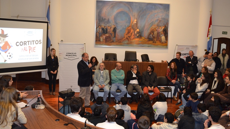 El novedoso proyecto “Cortitos y al Pie” tuvo su cierre este martes en el Concejo Municipal. Sin dudas que el legado de las acciones desarrolladas dentro del Programa de Convivencia y Participación dejaron una huella grande en los más de 100 chicos que participaron del proceso. Un proceso en donde los alumnos tomaron parte de instancias como la narración oral de distintos cuentos en sus aulas junto a reconocidos periodistas deportivos del ámbito local o actividades similares junto a los jugadores de Unión, Luciano Vella y Santiago Zurbriggen.