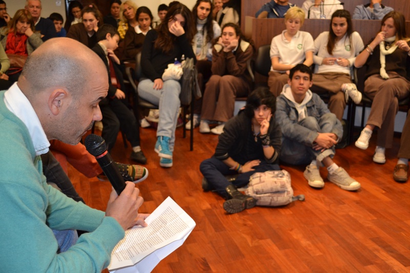 Las acciones tuvieron su broche de oro esta mañana ante un Recinto colmado por la llegada del prestigioso escritor Eduardo Sacheri, autor de la novela “La pregunta de sus ojos”, obra que fue llevada al cine por Juan José Campanella bajo el título de “El secreto de sus ojos” y que resultara ganadora de un premio Oscar. Sacheri, además, fue co-guionista de la película animada “Metegol”. Junto a él, estuvieron otros relevantes escritores y figuras como el relator de fútbol Walter Saavedra, y los periodistas y escritores Claudio “Turco” Cherep y Ricardo Centurión.