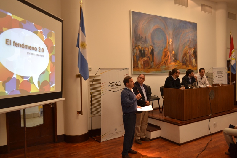 Mario Altamirano fue el expositor encargado de abrir las ponencias al referirse a “El fenómeno 2.0”: “Cuando llegan lo que son los foros, los blogs; ahí tenemos un lugar donde expresarnos, entonces ese es el cambio que se genera con respecto a lo que es web 2.0 y web 1.0: la participación del usuario. El usuario ahora puede estar activo, puede opinar, puede decir lo que piensa de esa empresa, de esa organización y también entrar en contacto directo. Llegamos a un era donde en nuestro celular tenemos miles de aplicaciones, donde la mayoría son sociales. Las aplicaciones son partes de la web 2.0, aplicaciones dinámicas que permiten el contacto con los demás. Las características que caen a la orden del día tienen que ver con aplicaciones y páginas de Internet que utilizan la inteligencia colectiva”.