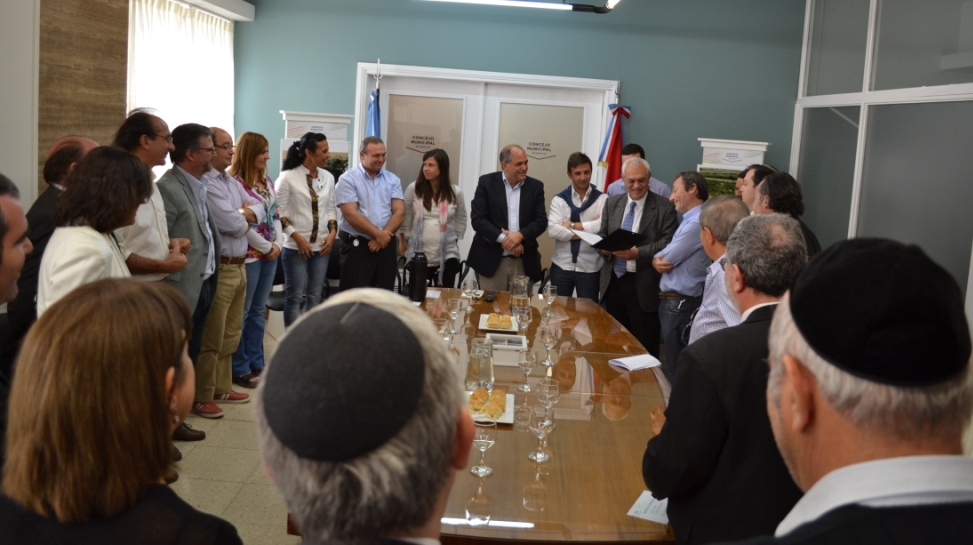 El encuentro se realizó en la Sala de Reuniones “Agustín Zapata Gollán” y fue encabezado por el presidente del Concejo, Leonardo Simoniello. En la ocasión, se hicieron presentes, el vicepresidente primero del Cuerpo, Sebastián Pignata -autor de la Ordenanza-; los concejales Leandro González, Ariel Rodríguez, Vanesa Oddi, Adriana Molina, Mariano Cejas, Ignacio Martínez Kerz y Fernando Fleitas; los secretarios Municipales, de Gobierno, María Martín; y de Planeamiento, Eduardo Navarro; el tesorero y miembro de la Comisión de AMIA, Ariel Cohen Sabban; por la DAIA Filial Santa Fe, su vicepresidente, Alberto Sulam; el secretario, Fabián Glembotsky; y Cintia Vaisman. Además, concurrieron la subsecretaria de Turismo, Claudia Neil; el director Provincial de Museos, Roberto Magnín; la representante de la Asociación Cultural Israelita I.L. Peretz, Paula Silber; el Rabino Frain Rosenzwail; el decano de la Facultad de Humanidades y Ciencias de la Universidad Nacional del Litoral, Claudio Lizarraga; el presidente de la Comunidad Israelita de Santa Fe, Gabriel Pivin; y por Sociedad Hebrea SEFARADI, Roberto Tobelem y Noemí Mena.
