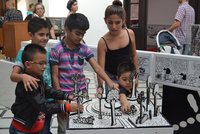 La muestra, que fue diseñada por el Museo de los Niños “Barrilete” de la ciudad de Córdoba, recorre de manera didáctica varias de las facetas de Mafalda lo que, a su vez, permite una reflexión sobre temas como derechos humanos, derechos de los niños, medio ambiente o el cuidado del planeta.