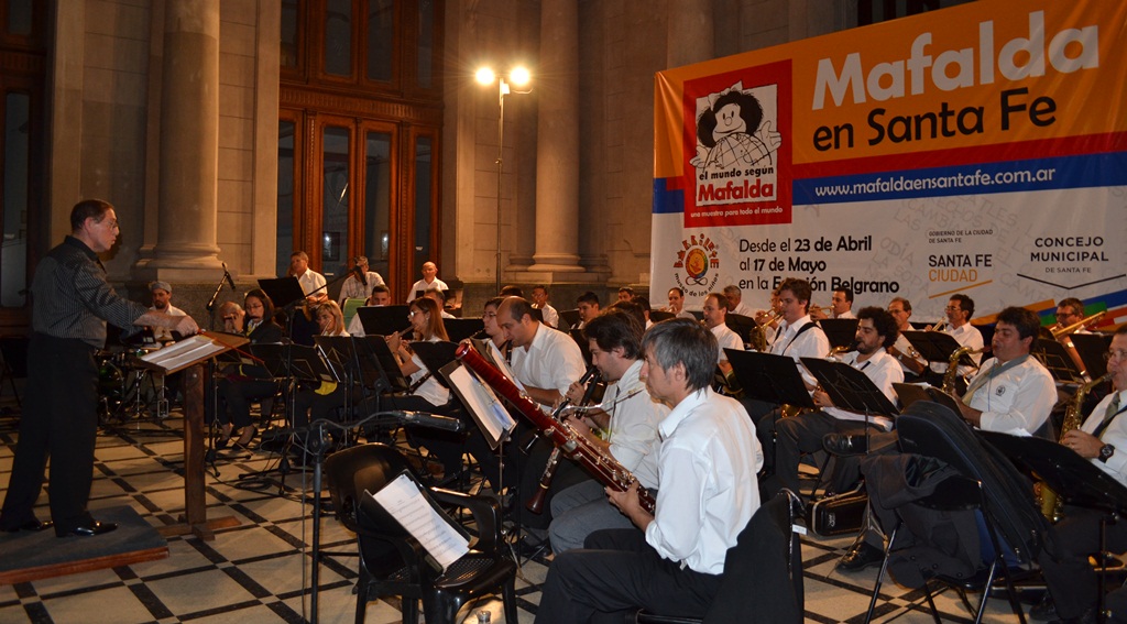 Un concierto de la Banda Sinfónica “Ciudad de Santa Fe”, dirigida por el maestro Juan Rodríguez y con la participación de la cantante Gabriela Roldán, engalanó esta tarde la inauguración de la muestra “El mundo según Mafalda”. Ocurrió en el hall central de la Estación Belgrano, en Bulevar Gálvez 1150.