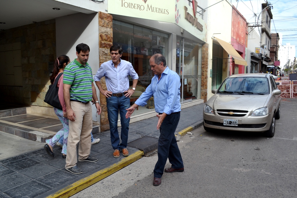 El Presidente del Concejo visitó esta mañana los trabajos de remodelación del primer tramo de la arteria comprendido entre San Martín y Rivadavia. Con las tareas se jerarquizará la zona comercial y se ampliará la vereda para circulación peatonal.