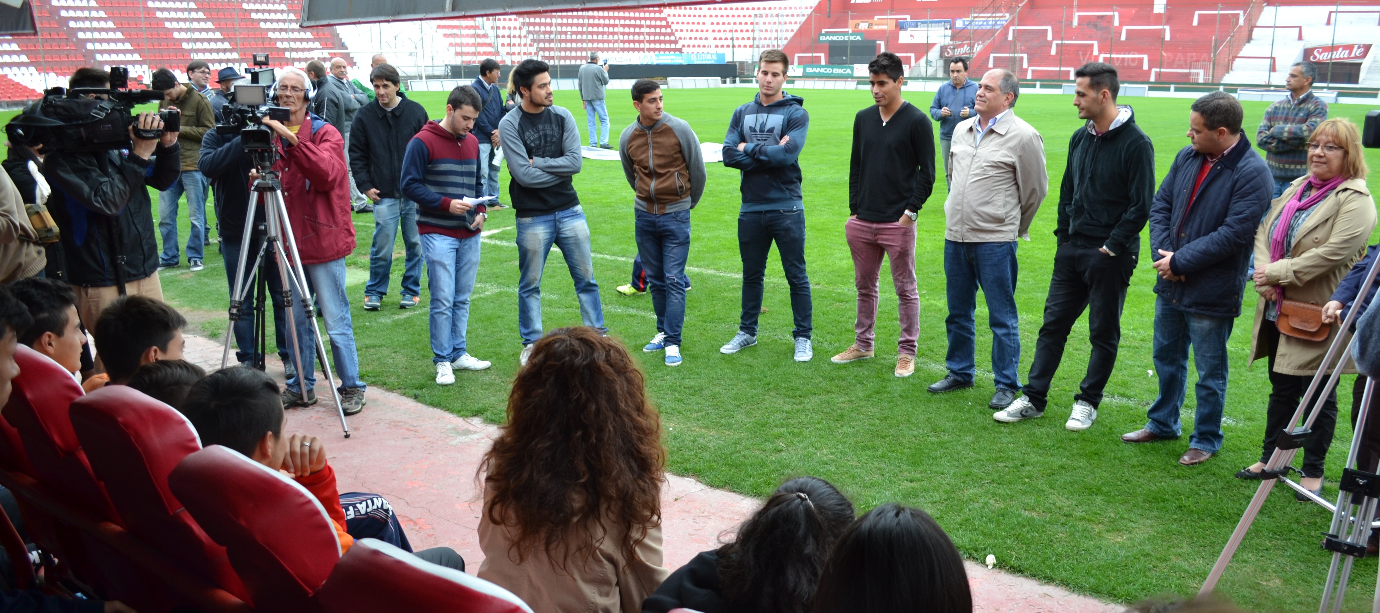 A pocos días de una nueva edición del clásico santafesino, jugadores de ambas instituciones se sumaron a otra jornada de “Cortitos y al Pie”. De la mano de la literatura, los deportistas compartieron relatos de fútbol con alumnos secundarios de la ciudad. A diferencia de lo ocurrido hace semanas atrás, esta vez fue la entidad tatengue la que ofició de anfitriona. Vivir la pasión sin violencia, una nueva apuesta desde el Concejo Municipal.