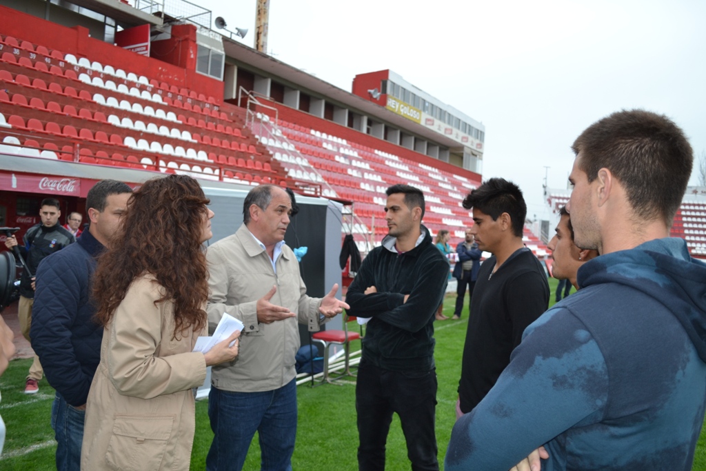 Como ocurriera semanas atrás en el Brigadier López, ahora llegó el turno del Estadio 15 de Abril, escenario donde se disputará el próximo domingo 4 de octubre otra edición del clásico santafesino. De la jornada participaron los jugadores de Colón, Matías Ballini y Gerónimo Poblete; y de Unión, Facundo Castro y Lucas Colitto; junto a alumnos secundarios de las escuelas, Nº 633 Centenario de Bolivia y Nº 527; y un grupo de jóvenes futbolistas pertenecientes a la Universidad Nacional del Litoral. También, asistieron, por Unión, el encargado del Departamento de Prensa y Relaciones Humanas, Nicolás Rucci; la prosecretaria, Gladys Nancy González; y el Gerente, Gustavo Recce; y los secretarios, de Actas e Información Pública y de Relaciones Públicas y Humanas del Club Colón, Pedro Passeggi y Lucas García, respectivamente.