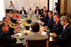 El presidente del Concejo Municipal, Leonardo Simoniello; junto a los Concejales de la ciudad y Senadores Provinciales que componen el Frente, se reunieron este mediodía con el intendente José Corral. Las autoridades revalidaron su compromiso para que se sancione el Proyecto, que ya cuenta con media sanción en la Legislatura Provincial.