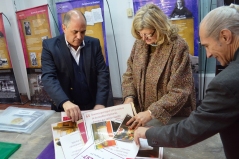 La ministra de Educación de la provincia fue recibida por el representante del Centro Ana Frank en Santa Fe, Leonardo Simoniello, para juntos recorrer este importante conjunto de muestras educativas y culturales para la ciudad. Además, la Ministra entregó a Simoniello la declaración de interés educativo por parte del gobierno provincial.
